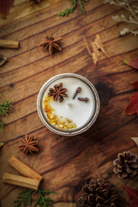 El confort hecho vela. Naranja, canela, vainilla y clavo se funden en una sinergia especiada que reconforta y envuelve.